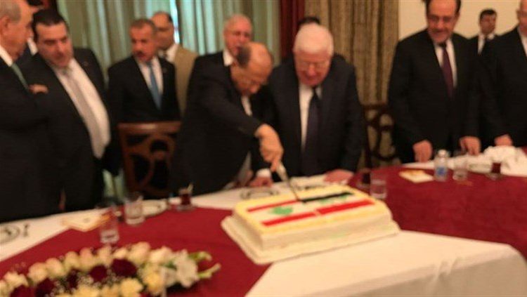 نشر الوزير السابق الياس بو صعب صورة للرئيس العراقي محمد فؤاد معصوم محتفلاً بعيد ميلاد رئيس الجمهورية ميشال عون خلال زيارته للعراق.