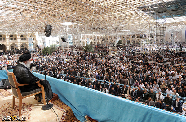 ونوه آية الله خامنئي الى أن الجمهورية الاسلامية في إيران ظاهرة استمرت منذ انطلاقتها قبل 35 عاما وكانت ناجحة في العقود الثلاثة الأخيرة، مشيرا الى أن ايران اجرت 32 عملية انتخابية خلال سنيها الـ 35 من عمر الثورة الاسلامية كانموذج لحاكمية الشعب، مبينا أن المشاركة الإيرانية الكثيفة في عدد من مراحل الانتخابات هي من أبرز مظاهر الديمقراطية في العالم.
