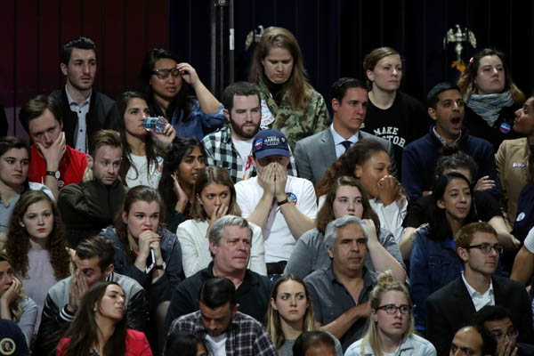 وبدت تعابير الحزن والخيبة على وجوه أنصار هيلاري بعدما مالت الدفة بشكل مفاجئ لترامب، في الوقت الذي لا تزال فيه النتائج الأولية تصدر تباعا من الولايات في الانتخابات الرئاسية. بالمقابل، ابدى مناصرو المرشح ترامب ارتياحهم وبهجتهم، بما تؤول اليه النتائج.