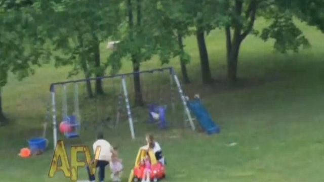 رفع ناشط تسجيلا التقط أثناء نزهة جمعت بين أولياء أمور وأبنائهم، تظهر فيه طفلتان تركبان عربة صغيرة تنزلق في منحدر، متجهة نحو طفلة أخرى تقف على بعد أمتار قليلة.