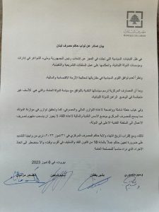أولاً: إن البيان توجه للقوى السياسية لتذليل التباينات فيما بينها والعمل على انتخاب رئيس للجمهورية، وملء الشواغر في إدارات ومؤسسات الدولة، كذلك يريد البيان أن تتحمل هذه القوى السياسية مسؤولياتها لمعالجة الأزمة الاقتصادية والمالية، وعدم السماح بوصول مسلسل الفراغ إلى السلطة النقدية نظراً للانعكاسات الكارثية لهذا الأمر، إن حصل، على مختلف نواحي الحياة الاقتصادية والمالية والنقدية في البلاد.