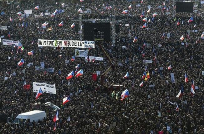 وملأ محتجون من أنحاء البلاد، التي يقطنها نحو 10.7 مليون نسمة، متنزه ليتنا في العاصمة براغ وهم يلوّحون بعلمي التشيك والاتحاد الأوروبي. وشهد المتنزه أكبر تظاهرات في تشرين الثاني عام 1989 حين انهار الحكم الشيوعي في تشيكوسلوفاكيا سلمياً بعد أسابيع من سقوط جدار برلين.