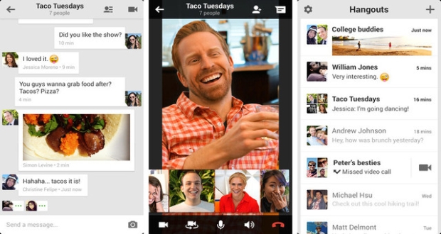 وتُتيح خدمة Hangouts للمستخدمين إجراء المكالمات الصوتية ومكالمات الفيديو فضلاً عن إجراء اتصالات دولية وتبادل الصور ومقاطع الفيديو بين المُستخدمين بكل سهولة.