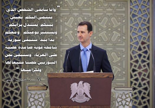 من نافل القول ان خطاب القسم حمل تعبيرات سياسية صارمة في قراءة مسار الحرب على الإرهاب داخل سورية وعلى مستوى تطورات المنطقة والعالم حيث الاستنتاج الطبيعي بأن أيا من المتورطين في العدوان على سورية لن ينجو من التبعات والارتدادات وكان البارز في الداخل هو وعد الأسد للرقة وحلب وهذا مضمون امر العمليات اللاحق للقوات المسلحة السورية ولوحدات الدفاع الوطني المشاركة في مسيرة سورية الوطنية الكبرى بقيادة الأسد لدحر امراء الحرب وعصابات التكفير .
