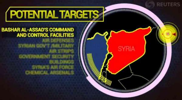 وبالنسبة لاختيار الأهداف، ذكرت الوكالة أنّ الأهداف الأكثر ترجيحا هي مراكز القيادة والسيطرة والدفاعات الجوية الخاصة بقوات الأسد وأي جزء من ترسانة أسلحته الكيميائية يعتقد أنه يمكن مهاجمتها بأمان.