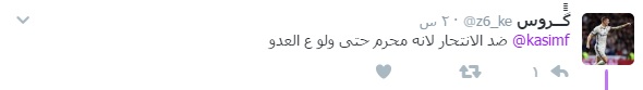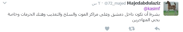 ومن الردود التي لم يتوقعها مقدّم برنامج “الاتجاه المعاكس” كانت سواء من أشخاص حقيقيين أو ربما كانوا فعلاً من “محبيه” الذين ينتمون للمعارضة المسلحة بطرق أو بأخرى ويوصلون رسائل القاسم إلى المقاتلين على الأرض إلا أنهم لم يقتنعوا بدعوته يوم أمس ومنهم من كتب بأنها ” عمليات محرّمة ولو كانت العدو” .
