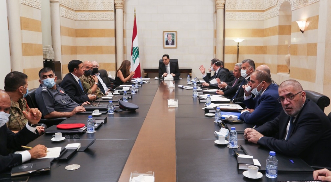 ترأس رئيس مجلس الوزراء الدكتور حسان دياب اليوم اجتماعا لخلية الأزمة، حضره نائب رئيس مجلس الوزراء وزيرة الدفاع زينة عكر، ووزراء المال غازي وزني، الاقتصاد والتجارة راوول نعمة، الداخلية والبلديات محمد فهمي، الأشغال العامة والنقل ميشال نجار والشؤون الاجتماعية رمزي المشرفية، قائد الجيش العماد جوزاف عون، الأمين العام لمجلس الوزراء القاضي محمود مكية، الأمين العام للأمن العام اللواء عباس ابراهيم، المدير العام لقوى الأمن الداخلي اللواء عماد عثمان، المدير العام لأمن الدولة اللواء أنطوان صليبا، المدير العام للجمارك بدري ضاهر، رئيس شعبة المعلومات العميد خالد حمود، قائد الشرطة العسكرية العميد نبيل عبدالله، رئيس شعبة العمليات في قوى الأمن الداخلي العقيد جان عواد، ومستشار رئيس الحكومة خضر طالب.