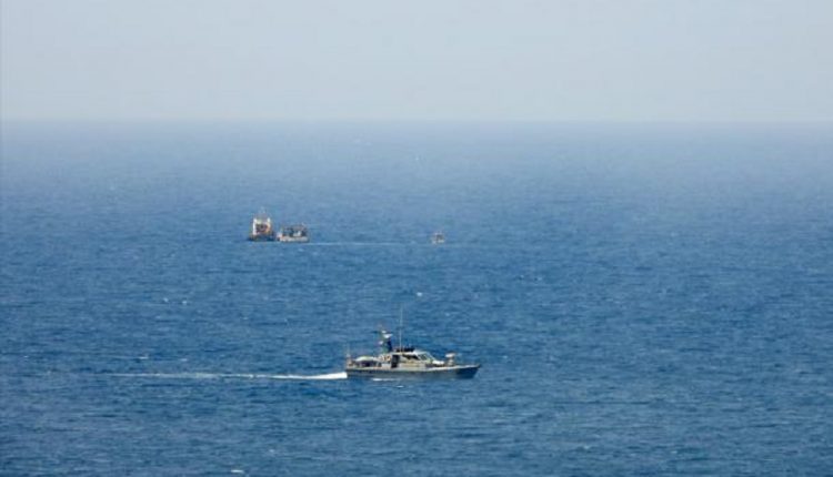 زورق للجيش اللبناني مقابل زورق للعدو الصهيوني يفصل بينهما خط الطفافات الذي يرفضه لبنان في المفاوضات غير المباشرة في رأس الناقورة