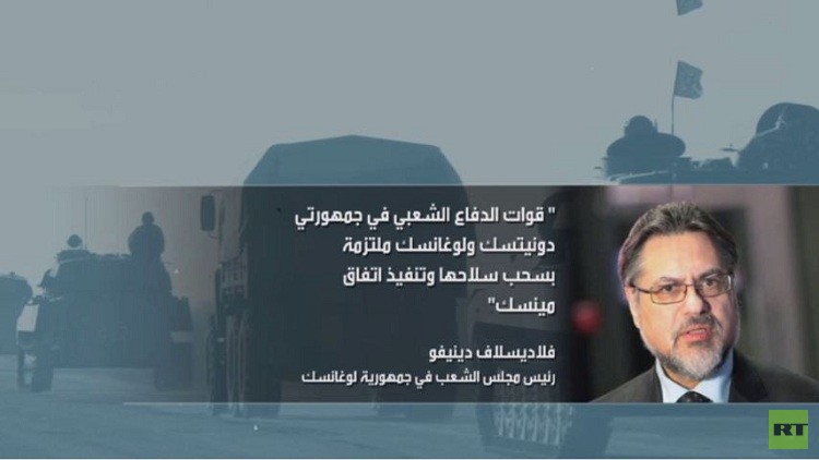 أكد فلاديسلاف دينيفو نائب رئيس مجلس الشعب في جمهورية لوغانسك الشعبية، أكد أن قوات الدفاع الشعبي في جمهوريتي دونيتسك ولوغانسك ملتزمة بسحب سلاحها وتنفيذ اتفاق مينسك.