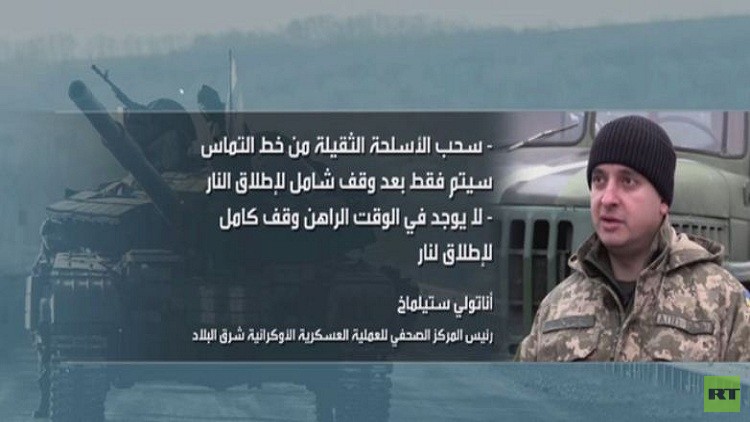 وتم تحديد سحب الأسلحة من خط الفصل الحالي بالنسبة للقوات الأوكرانية، ومن خط الفصل الذي حدد في سبتمبر/أيلول الماضي بالنسبة لقوات الدفاع الشعبي.