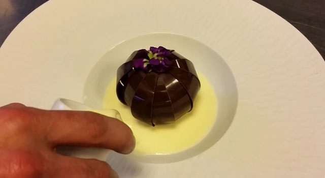ابتكر الشيف البرتغالي، جاكسيم سوسا، تحلية فريدة من نوعها، استقطبت ملايين المشاهدين، بعد أن انتشر خبرها كالنار في الهشيم عبر الإنترنت، حيث تتفتح كالزهرة، في “بتلات” من الشوكولا، تحوي في قلبها فواكه وقطع حلوى أخرى، كمفاجأة مدهشة، بعد صب الكريم الساخن عليها.