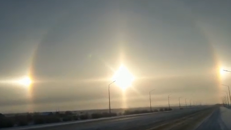 تداولت مواقع التواصل الاجتماعي مقطع فيديو يبين ظاهرة “الشمس الثلاثية”، أو ما يعرف بالشمس الكاذبة التي رصدت مؤخرا في شبه جزيرة يامال غرب سيبيريا.