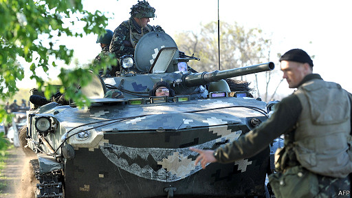 اقتحمَت القوات الأوكرانية مدينةَ سلافيانسك شرقَ البلاد وسيطرت على مرتفع استراتيجي يشرف على المدينة حيث يقع مبنى التلفزيون.