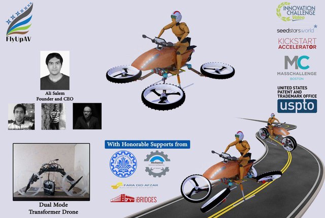 وقال أحد الباحثین ان المنافسین في أمیرکا وروسیا وفرنسا وألمانیا وبریطانیا وسلوفاکیا یعکفون حالیا علی تطویر نموذج تجریبي من السیارات الطائرة قائلا انهم اختبروا نسخة بدون طیار وفي المرحلة التالیة یقومون بصناعة دراجة ناریة طائرة أو نسخة الروبوت المأهولة ولیس لها نموذج أجنبي ویمکن تسمیته أول دراجه ناریة طائرة محولة في العالم.