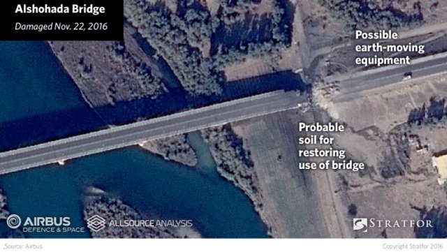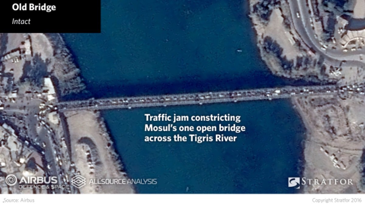 نشر مركز ستراتفور الأميركي، صوراً جوية تظهر قطع “الشرايين الحيوية” لمدينة الموصل .