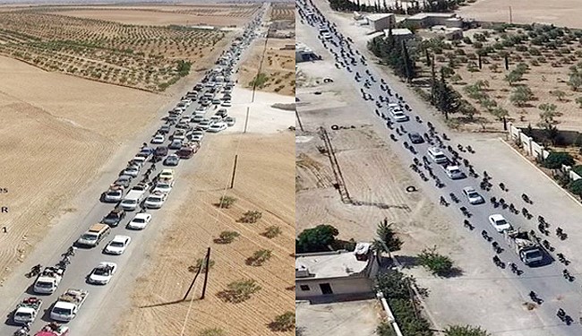 وبحسب تحالف قوات سوريا الديمقراطية، فإن الصور، التي تظهر بها قافلة من مئات السيارات، التُقطت يوم 12 أغسطس/ آب.