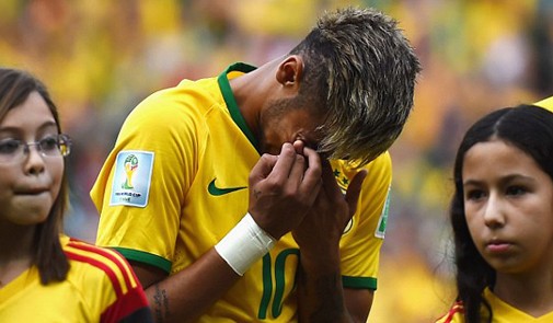 وقد شاهد العالم باجمعه نجم برشلونة الاسباني نيمار وهو يبكي خلال اداء النشيد الوطني البرازيلي قبيل صافرة انطلاق المباراة الافتتاحية ضد كرواتيا (3-1)، ولم تفارق الدموع المنتخب البرازيلي منذ تلك اللحظة.