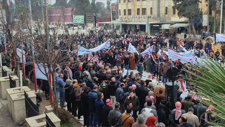ورفع المشاركون في الاحتجاجات لافتات تندد بالحصار الذي تفرضه ميليشيا “قسد” على المدنيين في إطار انتهاكاتها المتواصلة بحق الأهالي بشكل يومي تنفيذاً لأوامر المحتل الأميركي وخدمة لمخططاته في المنطقة واستمرار نهب خيرات وثروات سورية.