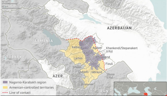 وتصاعد التوتر بشأن السيطرة على الاقليم من اندلاع صراع أوسع في جنوب القوقاز الذي تمرّ من خلاله خطوط أنابيب لنفط والغاز، ويقع إقليم ناجورنو قرة باغ داخل أذربيجان لكن تسيطر عليه غالبية ذات أصول أرمينية.