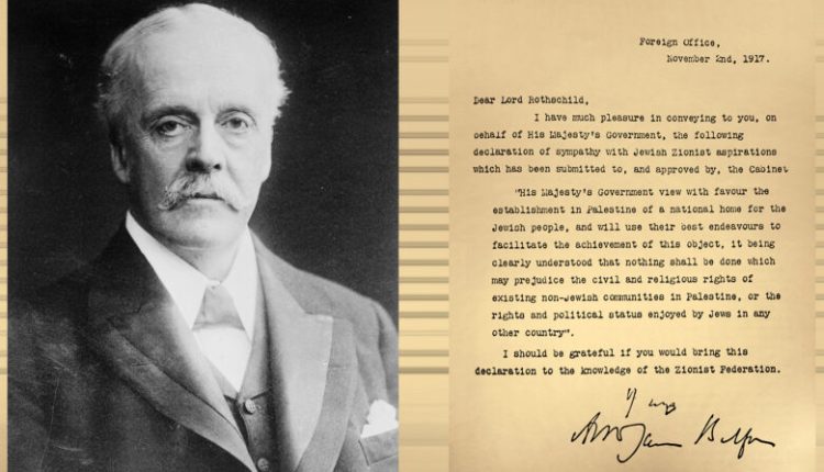 يعدّ وعد بلفور المشؤوم في الثاني من تشرين الثاني عام 1917 تجسيداً لفكرة “توطين” اليهود في فلسطين عند زعماء الاستعمار الغربي الذين نادوا بها لدوافع استعمارية، وذلك بقصد احتلال بلاد المشرق العربي عن طريق المناداة بضرورة تجميع الجماعات اليهودية في فلسطين، وإقامة كيان لهم فيها، وعندما راجت هذه الفكرة في الأوساط الاستعمارية الأوروبية، كان الصراع الامبريالي الاستعماري محتدماً حول اقتسام ممتلكات الإمبراطورية العثمانية، وكان الصراع على أشده بين بريطانيا وفرنسا وروسيا القيصرية، ورأت بريطانيا أن فكرة توطين الجماعات اليهودية في فلسطين ستمكنها من الدفاع عن مصالحها الاستعمارية في الشرق.