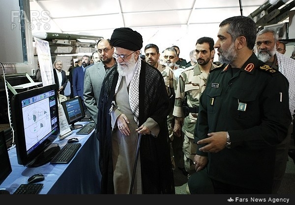 ويعد عرض طائرة RQ170 بدون طيار المتطورة جدا والتي تم اصطيادها وصناعة النموذج الوطني المشابه لها من اهم الانجازات التي عرضها المعرض.imam-khamenei1