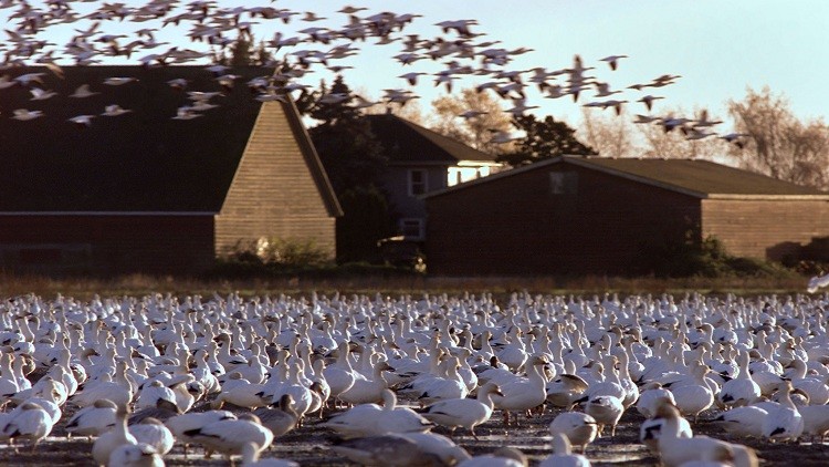وقام عشرات العاملين في إدارة بلدية ايداهو بجمع جيف الإوز الذي تساقط على مدينتهم.
