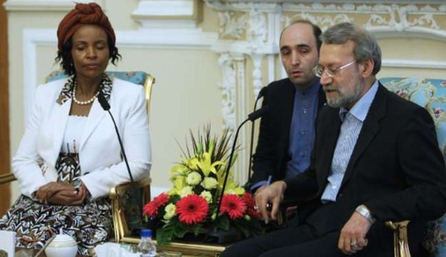 وقال لاریجاني خلال استقباله في طهران الاحد وزیرة العلاقات والتعاون الدولي الجنوب افریقیة السیدة مایتة انکوانا مشابانة، انه في حال ازالة بعض العقبات وتحلي الاطراف الاخرى للتفاوض (حول القضیة النوویة الایرانیة) بجدیة وصدقیة فبالامکان الوصول الى النتائج اللازمة.
