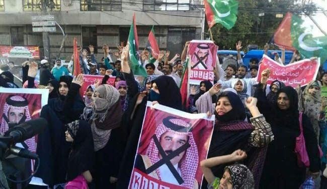 شهدت العاصمة الباكستانية تظاهرة احتجاجية غاضبة، منددة بزيارة ملك البحرين حمد بن عيسى آل خليفة الى بلادهم.