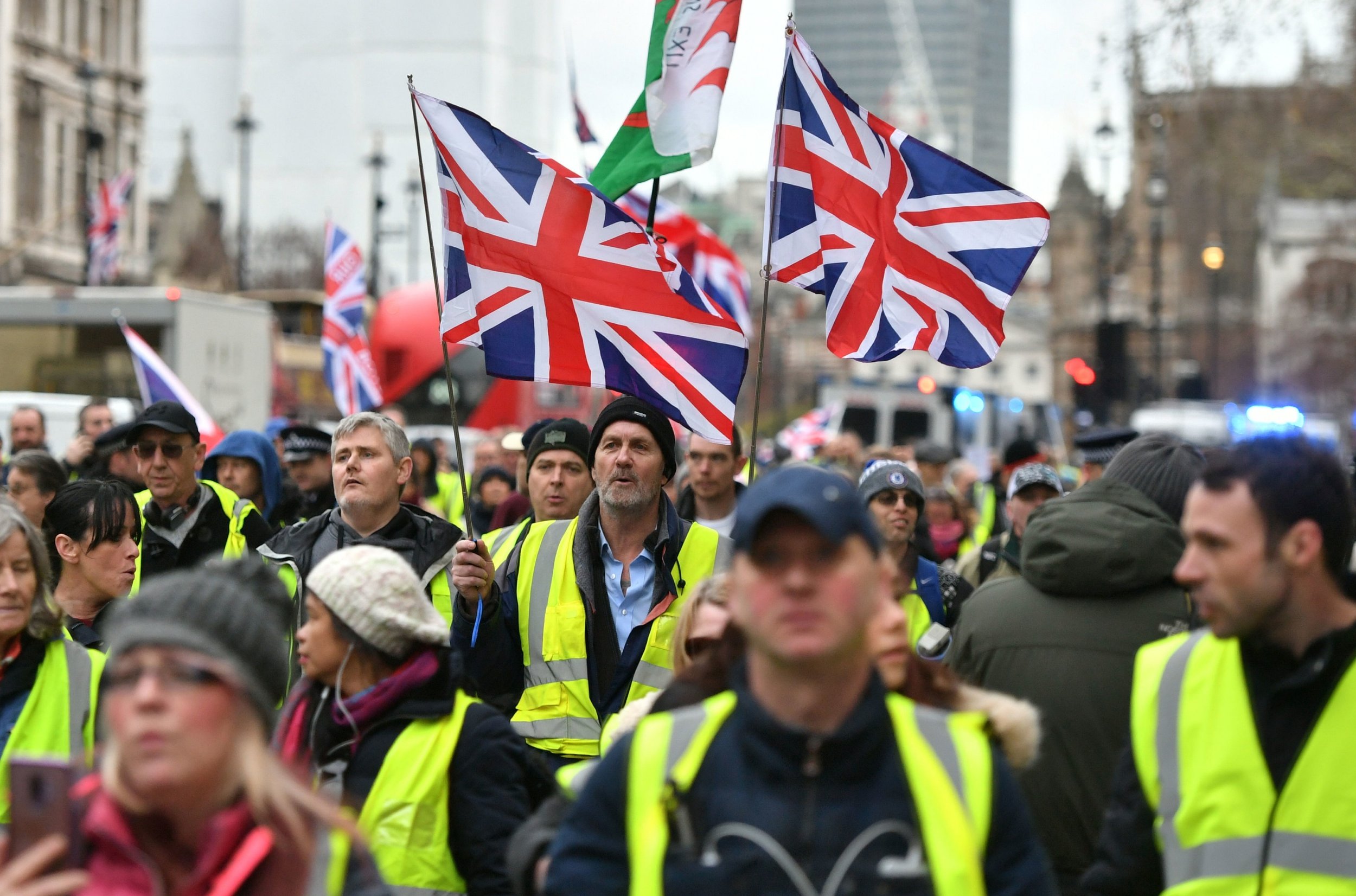 مئات البريطانيين ب”سترات صفراء” يتظاهرون في وسط لندن
