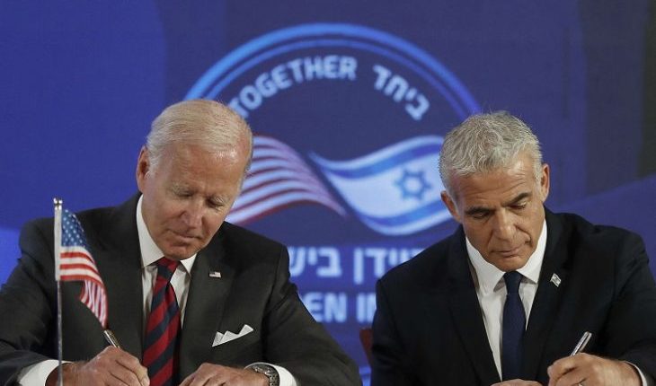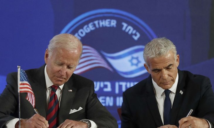 وقّع الرئيس الأميركي جو بايدن أمس الخميس في القدس المحتلة -خلال ثاني أيام جولته بالمنطقة- اتفاقا مشتركا مع رئيس الوزراء الإسرائيلي يائير لبيد أطلق عليه “إعلان القدس” للشراكة الإستراتيجية.