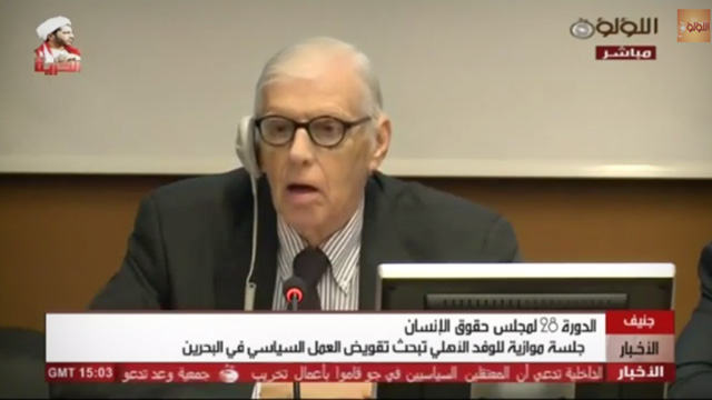 ودعا جريف أثناء ادارته جلسة موازية حول “تقويض العمل السياسي في البحرين” بمجلس حقوق الإنسان للأمم المتحدة على هامش أعمال الدورة الثامنة والعشرين المنعقدة في جنيف، دعا إلى إنهاء التمييز الذي تتعرض له الأكثرية في البحرين، موضحاً أنه كان يأمل أن يحصل تغيير في الوضع الحقوقي في البحرين ونوع من التسوية ومناقشة المشاكل الجدية ولكن ذلك لم يحدث.