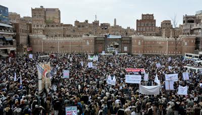 مسيرة جماهيرية حاشدة بصنعاء للتنديد بالصمت الدولي تجاه الجرائم السعودية في اليمن