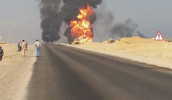 وقع انفجار أدى إلى اشتعال النار في خط الغاز المتجه من السويس إلى القاهرة عند الكيلو 80 من الطريق ما أسفر عن إصابة شخصين.