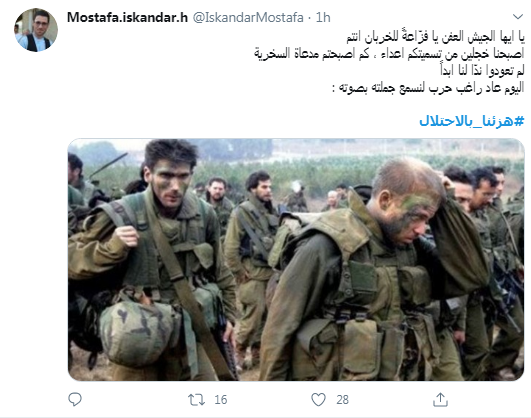 وأطلق رواد مواقع التواصل الاجتماعي هاشتاغ #هزئنا_بالاحتلال الذي لاقى تفاعلا واسعا في مواقع التواصل الإجتماعي.