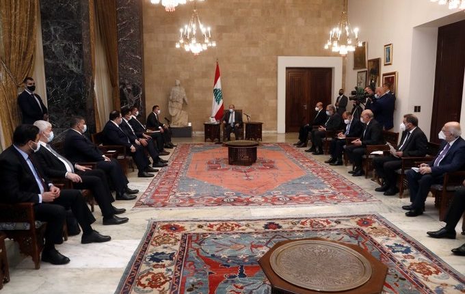 وقال الرئيس عون “نقدّر للعراق موافقته على طلب لبنان تزويده بالنفط الخام مقابل الخدمات الطبية، وآمل في التوصل الى سوق مشتركة بين دول المشرق وسأعاود طرح هذه المبادرة”.