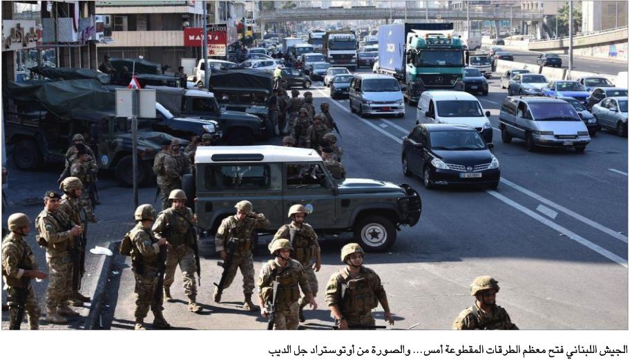 الخشية في لبنان من أن تكشف الأيام المقبلة مصادر قلق على الوضع اللبناني، من خلال تعقيد الوضع الحكومي أو تصعيد الوضع الأمني، وفي مواجهة هذه الخشية وسعياً لمنعها تبذل مساعي حثيثة لوضع المخارج والحلول السياسية للمسار الحكومي، وتنصبّ الجهود الأمنية لاحتواء الاحتقانات الناجمة عن قطع الطرقات، وما تتسبّب به من ردود أفعال غاضبة في أوساط عديدة، وبعدما توسّع نطاق الاعتداءات التي طالت مواطنين يحاولون العبور من منازلهم أو إليها.