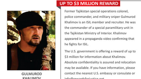 أعلنت واشنطن عن مكافأة قدرها 3 ملايين دولار لكل من يدلي بمعلومات تساعد في القبض على العقيد السابق في القوات الخاصة الطاجيكية غولمورود حليموف الذي أصبح أحد كبار قيادات تنظيم “داعش”.