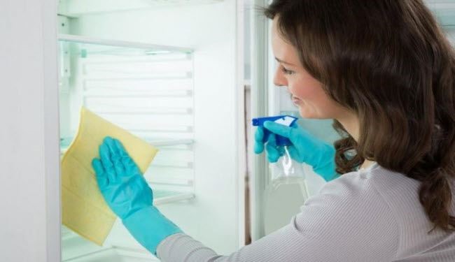 4. نظفي الثلاجة أسبوعياً من خلال إخراج المواد الغذائية، من ثم استخدمي منشفة مبللة بمزيج الماء والخل لمسح دواخل الجهاز، مع إزالة الأدراج والأرفف بغية جليها. واحرصي على نزع آثار الأطعمة والبقع فور ملاحظتها، إذ تصعب إزالتها في ما بعد.