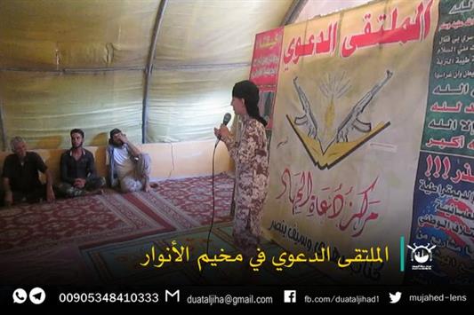 شريط دعائي مصوّر نشره الحساب الرسمي لـ«مركز دعاة الجهاد» بعنوان «مسرحية عن الحجاب في معهد التوحيد»، ربَّما يمكن أن يعطي تصوراً واضحاً عن شكل «إمارة إدلب» المطابقة لـ «إمارة الرقة»، لتبدو المدينتان متشحتين بالسواد، وإنْ اختلفت الرايات. في التسجيل المصور، تظهر فتاتان، الأولى تؤدي دور فتاة مسيحية، والأخرى مسلمة، ليدور حوار طويل تتخلّله الشتائم، في محاولة لـ «تقريع الآخر»، وزرع أفكار حاقدة على «كلّ من لا يشبه الجهاديين». ذلك الشريط يمكن أن يعطي انطباعاً عن شكل «إمارة إدلب» ومستقبلها. كذلك تظهر التسجيلات التي يوزعها المركز، عمليّات تدريب للأطفال على الأسلحة.