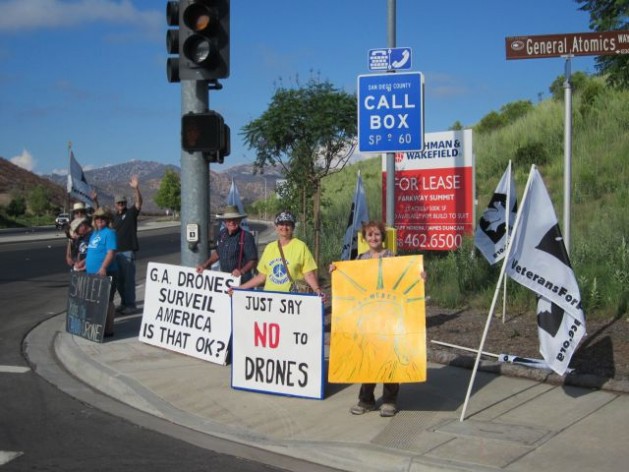 San Diego Veterans for Peace and their allies take their protest each Thursday to a busy corner near General Atomics, the manufacturer of Predator and Reaper drones.